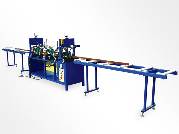 3、“JYSF200”型貼膜機靈巧的快換、快夾裝置,能在極短的時間里更換壓輪角度或方向以適應各種不同斷面型材的要求,大 幅提高生產效率;